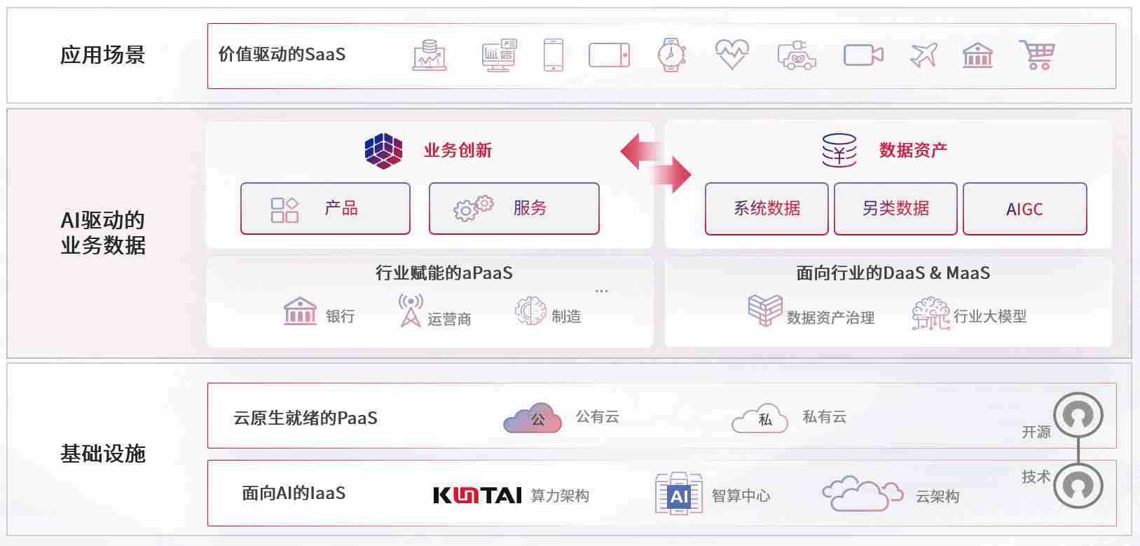 数字时代,,,,围绕企业数字化转型的关键要素,,z6尊龙数码开创性的提出数云融合战略和技术体系框架,,,,着力在云原生、、数字原生、、AI原生和信创产业上架构产品和服务能力,,,为处在不同数字化转型阶段的快消零售、、、汽车、、、金融、、医疗、、、、政企、、、、教育、、运营商等行业客户提供泛在的敏捷IT能力和融合的数据驱动能力,,,,构建跨界融合创新的数字业务场景和新业务模式,,,,助力企业级客户建立面向未来的核心能力和竞争优势,,,全面推动社会的数字化、、智能化转型升级。。